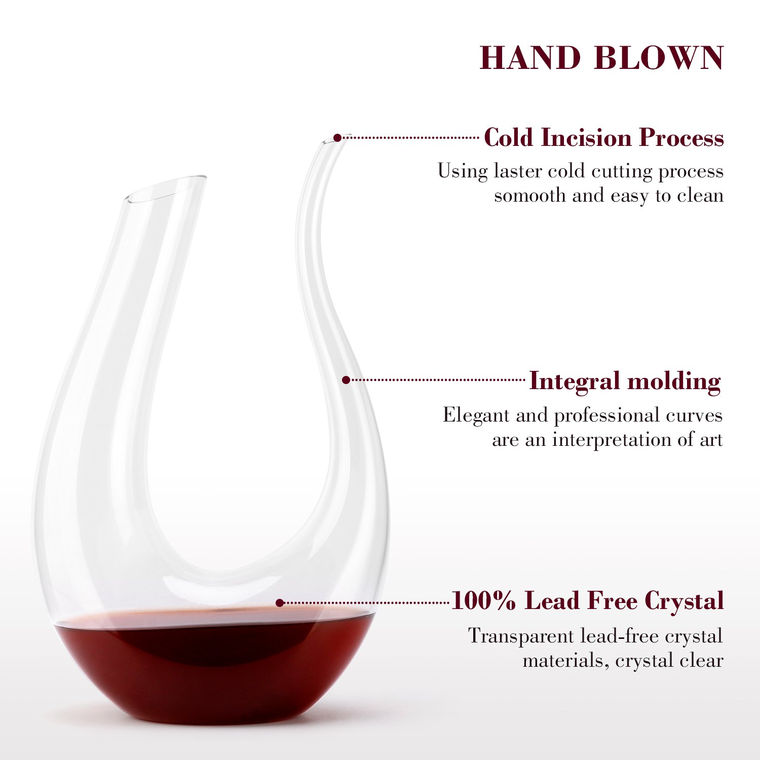 Muy destacable es su diseño. Este aireador de vino en forma de cuello de cisne está especialmente diseñado para dar un toque elegante a tu mesa. No sólo mejorará el disfrute del vino, sino que también, este decantador de vino llamará la atención de tus invitados al servir sus copas.